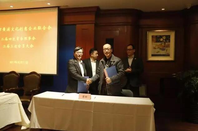 上海市黄浦文化创意企业联合会施建国副会长、上海浦东国际金融学会朱正言副秘书长分别代表各自单位在热烈友好的气氛下签署该协议。