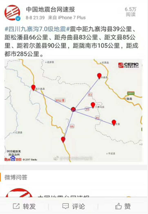 【最新报道】四川阿坝州九寨沟县发生7.0级地震