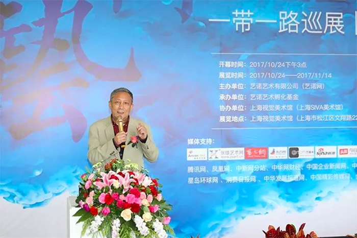 刘传铭先生在致辞中提出两个“信息量大”的概述,其一是指本次以“一带一路”“《艺术中国》”作为展览主题内容信息量大,通过弘扬中华艺术,使其走出国门,才是强国之本。而艺诺艺术基金《艺术中国》一带一路巡展在上海启动,已显现出其具有国际化的开端,这与党的十九大的主题“做好中国人,讲好中国故事”不谋而合,是对“讲好中国故事”的躬行实践。其二是涵盖艺术作品信息量大,主要表现在涉及的艺术门类丰富和表现形式多样上。中国已从飞速发展的历史时期逐步迈入了追求卓越品质的新时代,艺诺网要坚持用优秀的艺术作品来弘扬中国艺术,讲好中国故事。