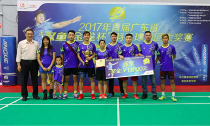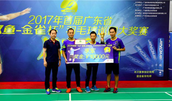 2017首届广东省“双鱼·金雀杯”羽毛球巡回大奖赛总决赛在广州双鱼运动体验中心球场进行决赛,经过十几小时的决战,最终最后获得的荣誉分别是:广州新动力全力扣杀俱乐部获得第一名“冠军”,深圳名翠体育用品甲壹俱乐部队获得第二名“亚军”,广州广泰·天健羽毛球队获得第三名“季军”,惠州汉江体育俱乐部获得第四名,“广州轻工第一福”队、广州威健·澳加林大话西游羽球会、广州给我一把98K、深圳昭洋热爱体育等5个球队并列荣获第五名。