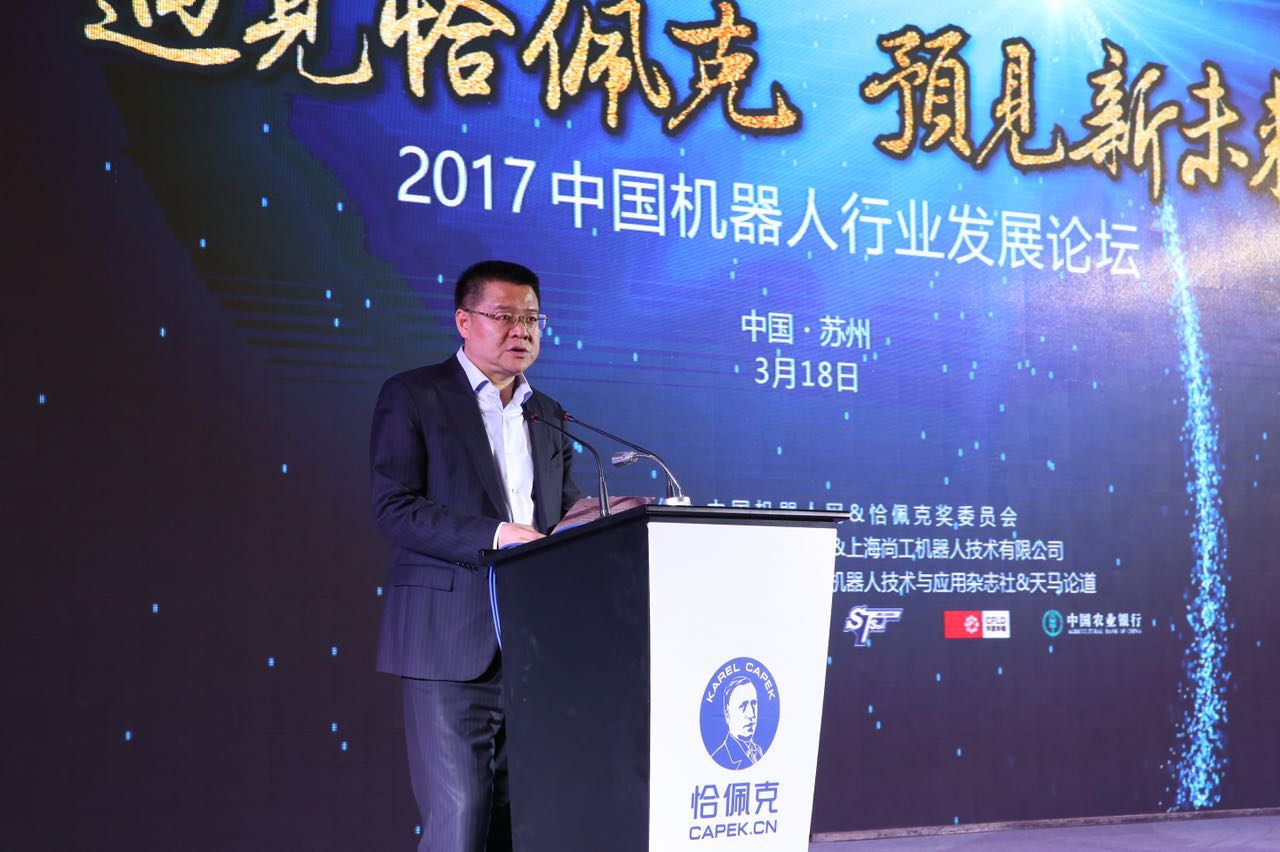央视证券资讯频道城市 网上海报道 (文/陈晓明 图/姜海俊)3月18日,2017 机器人行业发展论坛暨第三届“恰佩克”颁奖典礼在苏州吴中举行。本次活动由国内机器人专业门户网站—— 机器人网主办,苏州吴中经济技术开发区和上海尚工机器人技术有限公司承办,科沃斯机器人股份有限公司、机器人技术与应用杂志社、天马论道协办。哈工大机器人研究所、苏州大学机电工程学院作为支持单位对本次恰佩克奖的设置、评选等给予专业技术支持。